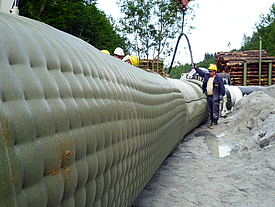 With Incomat Pro, unique filling heights of up to 3.50 m can be achieved. Thanks to innovative textile technology, an improvement of 95% has been achieved. This results in faster construction progress on site and lower installation costs. The increased tensile strength enables a more effective filling process, which ensures greater flexibility on site.