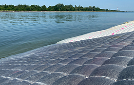 The geosynthetic concrete mattress consists of two high-strength fabric layers that are filled with fluid concrete on site. This creates a stable, adaptable protective layer that adapts perfectly to complex terrain shapes - both above and below water.