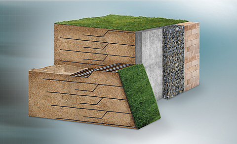HUESKER Synthetics Fortrac Systems now combines all system formats with Fortrac reinforced soil under one roof: Fortrac Nature, Fortrac Gabion, Fortrac Block und Fortrac Panel.