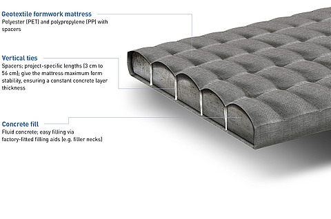 With Incomat Pro, HUESKER Synthetic is launching a technically optimised concrete mattress system for waterproofing and erosion protection under extreme conditions.