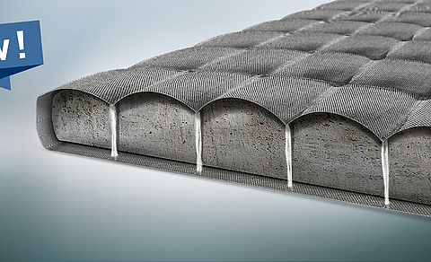 At the heart of the new high-performance system is the enhanced design of the web ties. This not only enables unprecedented filling heights but also ensures even concrete distribution on uneven ground or underwater installations. "Thanks to innovative textile technology and a modified material composition, we were able to significantly improve our previous Incomat Standard concrete mattress once again. The filling height has been increased by 95 % and the tensile strength by as much as 100 %," explains Simon Ebbert, Business Development Hydraulic Engineering at HUESKER. Compared to other concrete mattresses, Incomat Pro also requires up to 35 % less material to cover one square metre of surface.