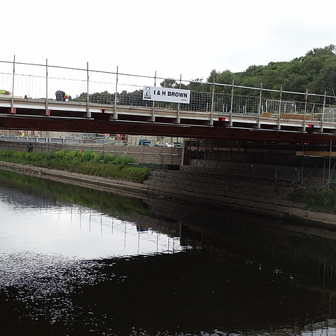 Design was carried out by I&H Brown’s specialist installer Thomas Ben and its reinforced soil consultant PaSCoE. The plan was to replace 210m of the northern river bank and 125m of the southern bank with new slopes constructed from imported and site won granular fill, reinforced with multiple layers of HUESKER’s uni-axial polyester Fortrac geogrids.