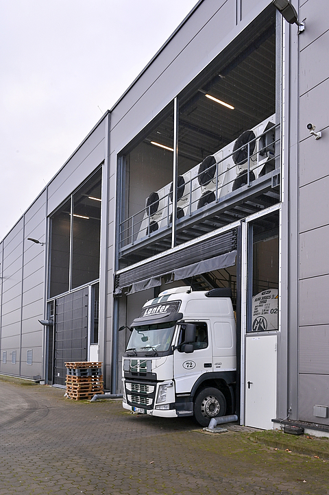 H&R Refining GmbH, based in Salzbergen, is a subsidiary of Hamburg-based H&R Group, a renowned global manufacturer of speciality chemicals. At the Salzbergen refinery site, numerous lorries are dispatched daily in addition to the actual production and the incoming of goods. The heavily frequented entrance areas pose a particular challenge. Despite the high frequency of use, the hall openings had to be protected against birds flying in and the resulting mess. At the same time, the function of the neighbouring air and heat exchangers could not be impaired under any circumstances. The task was therefore to develop a solution that would fulfil the hygiene requirements and at the same time ensure undisturbed ventilation.
